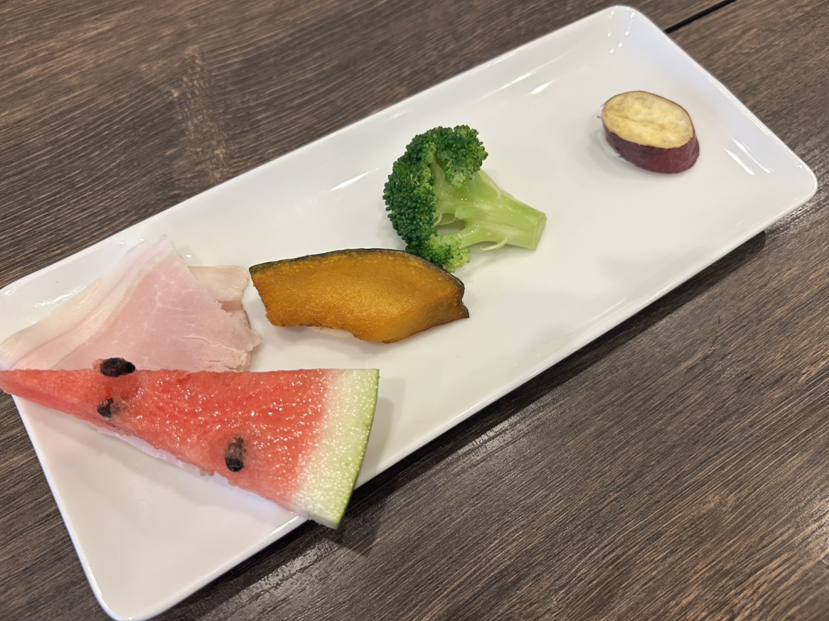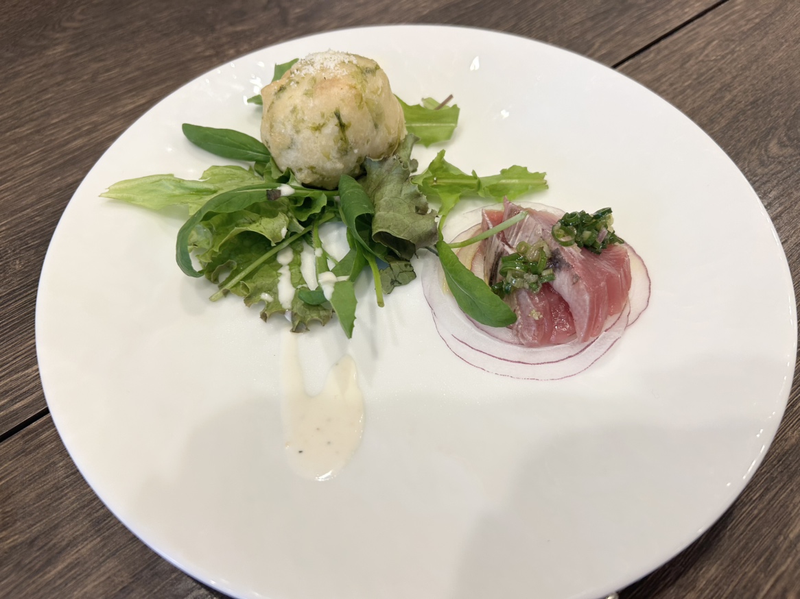 彩り豊かな前菜やコーンスープ、パスタもあり、どれも美味しくお腹いっぱいになりました🍝